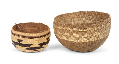 exterior stacked geometric designs in black; together with a Hupa cooking basket.