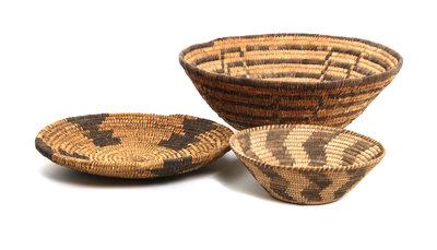 including a Pima (Akimel O'odham) and a Papago (Tohono O'odham) basket.