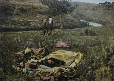 A hand colored photo mural Night Hawk in his Nest, 1890s, framed.