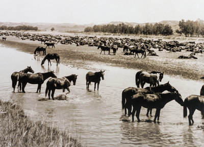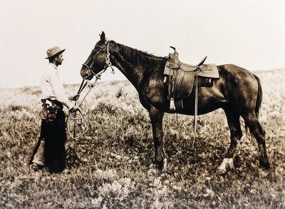 Two sepia photo murals SW Wrangler and Hot Noon, each unframed.