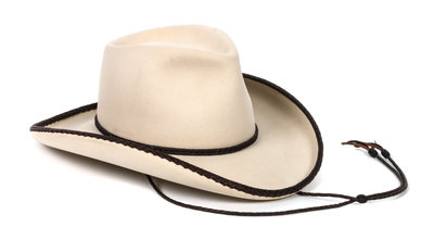 with braided leather hat band, rim and chin strap.