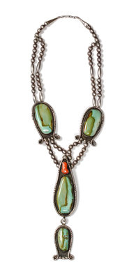 A Navajo Silver, Turquoise and Coral Necklace, Fred Thompson