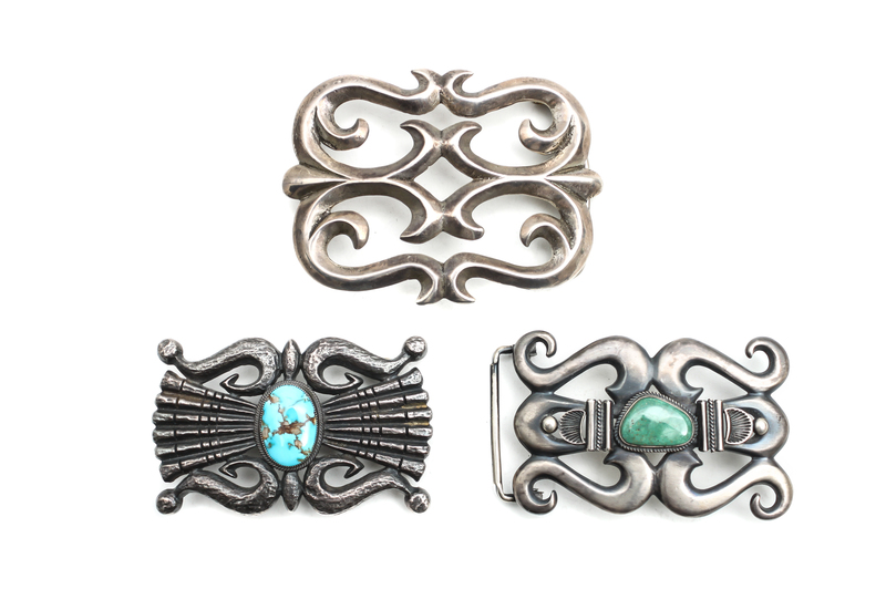 Two Navajo Sand Cast Belt Buckles, Henry Morgan