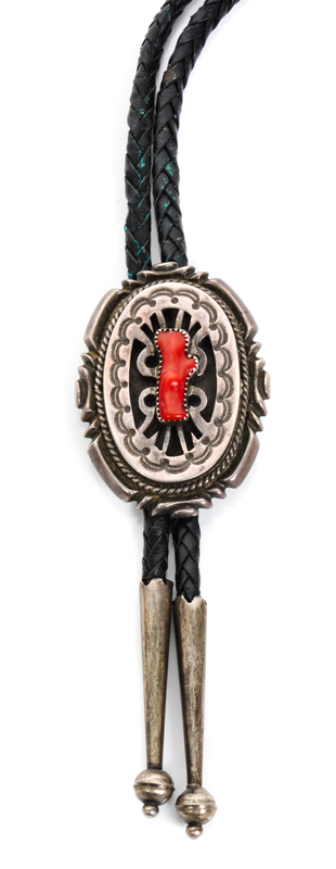 A Navajo Silver and Coral Bolo, Wilson Begay