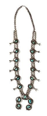 A Navajo Silver and Turquoise Squash Blossom Necklace, Bobby Thompson