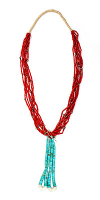 A Navajo Seven Strand Coral Necklace