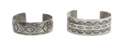 Two Traditional Style Navajo Stamped Silver Bracelets