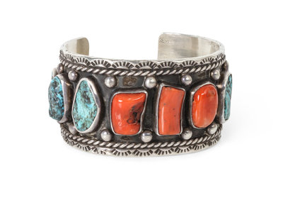 A Navajo Coral and Silver Bracelet, Jerry Roan