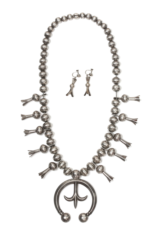 with ten blossoms, bench made tooled beads and a sand-cast naja, together with a pair of matching earrings.
