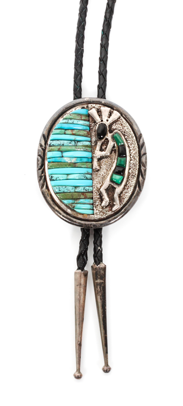 A Zuni and Navajo Silver, Turquoise and Multiple Stone Bolo, Charlene Dishta and Pete Sierra