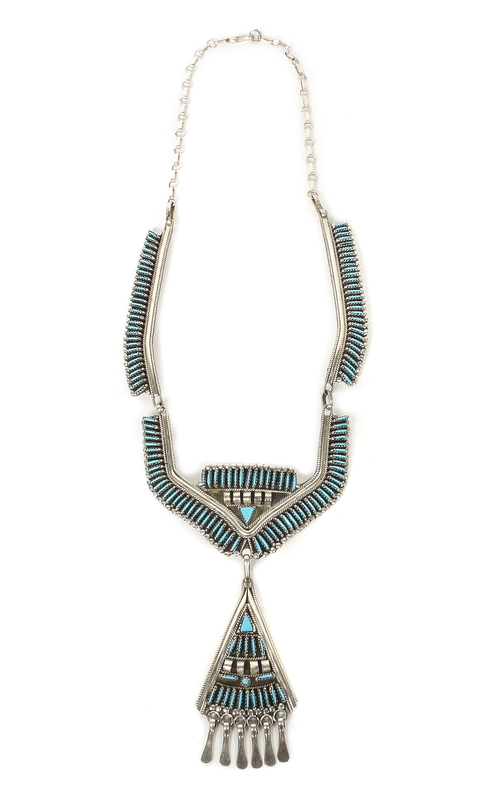 A Zuni Silver and Turquoise Needlepoint Necklace