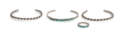 including a Zuni snake eye bracelet and ring, together with two twisted wire bracelets.