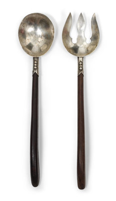 A Mexican Silver and Rosewood Salad Serving Set, Plateria I. Vigueras