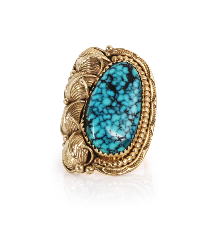 A 14 Karat Gold and Turquoise Ring