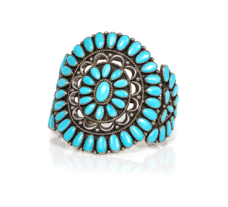A Zuni Silver and Turquoise Petit Point Cluster Bracelet