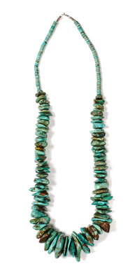 with graduated turquoise nuggets terminating in turquoise heishi beads.