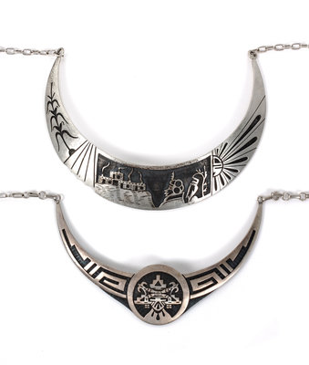 Two Southwestern Silver Pictorial Choker Necklaces.
