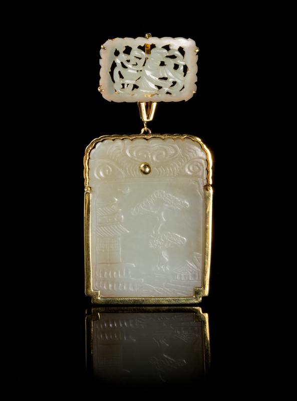 A Chinese Gold Mounted Jade Plaque