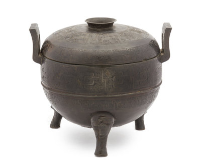 A Chinese Bronze Ritual Tripod Covered Vessel, Ding