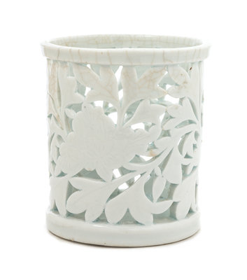 A Chinese Dehua Reticulated Porcelain Brush Holder