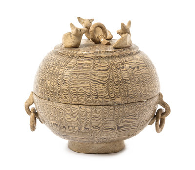 A Chinese Marble Glazed Jiaotai Pottery Covered Bowl