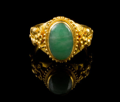 A Chinese 22 Karat Gold and Jadeite Ring