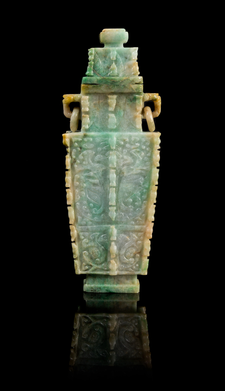 A Chinese Archaistic Jadeite Covered Vase