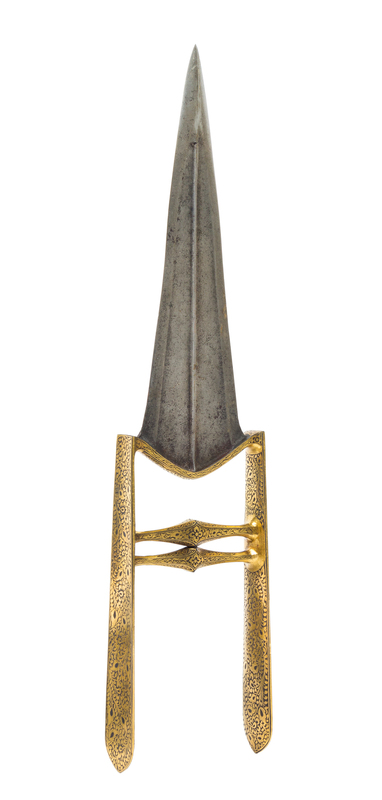 the handle worked to show foliate vines, mounted with a ribbed steel blade.