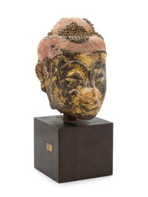 A Thai Parcel Gilt and Lacquered Terra Cotta Head of Buddha