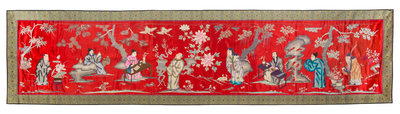 A Red and Blue Silk Embroidered Panel