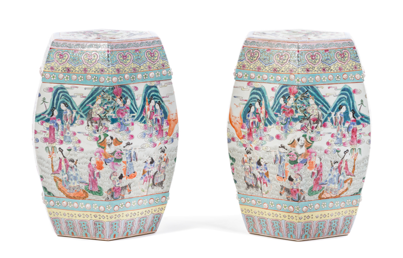 A Pair of Chinese Famille Rose Porcelain Garden Seats