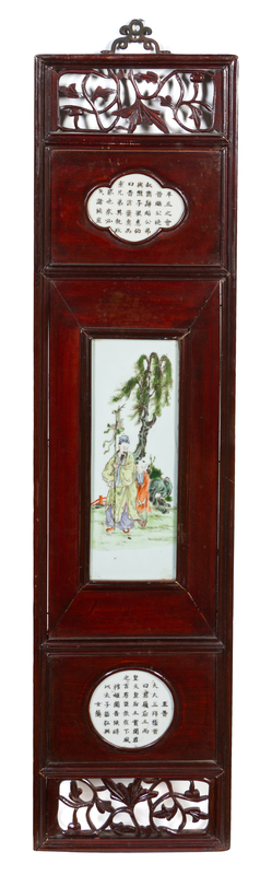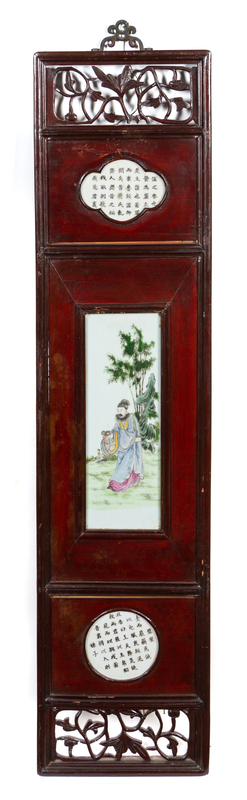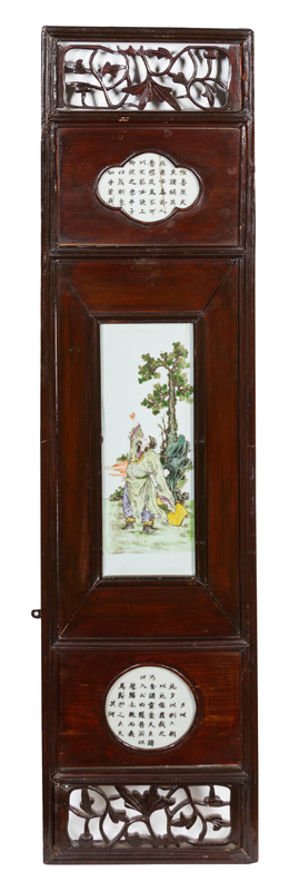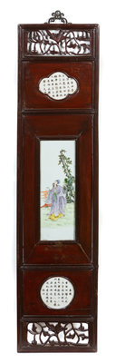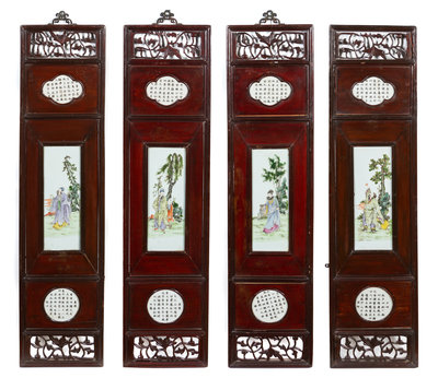 A Set of Four Chinese Famille Rose Porcelain and Wood Panels