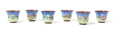 A Set of Six Chinese Canton Enamel Scholars Cups