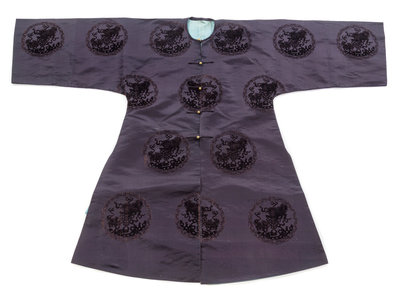A Chinese Midnight Blue Silk Cut Velvet Surcoat