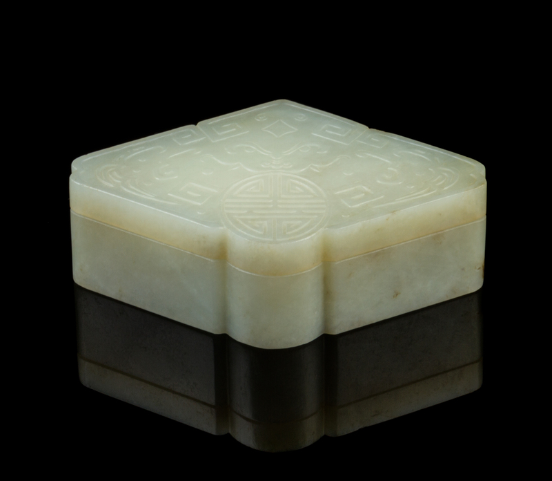 A Chinese Celadon Jade Lozenge-Form Box