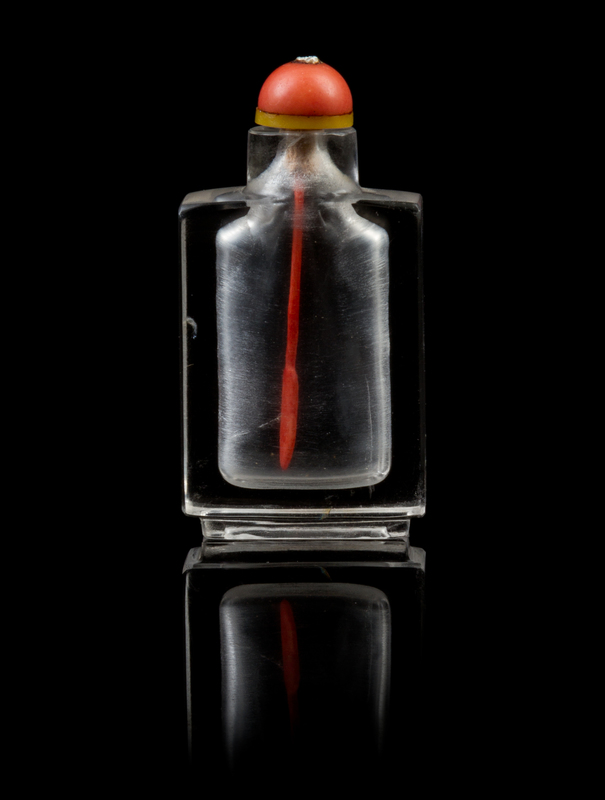 of rectangular form and raised on a recessed rectangular foot, having a domed red coral stopper.