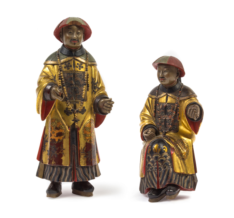 A Pair of Chinese Gilded Wood Figures of Mandarin