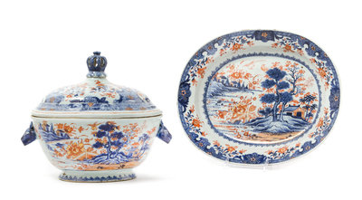 A Chinese Export Imari Pattern Porcelain Covered Tureen and Plate