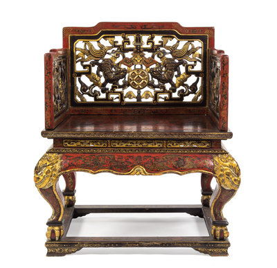A Chinese Gilt-Decorated Red-Lacquered Throne Chair