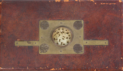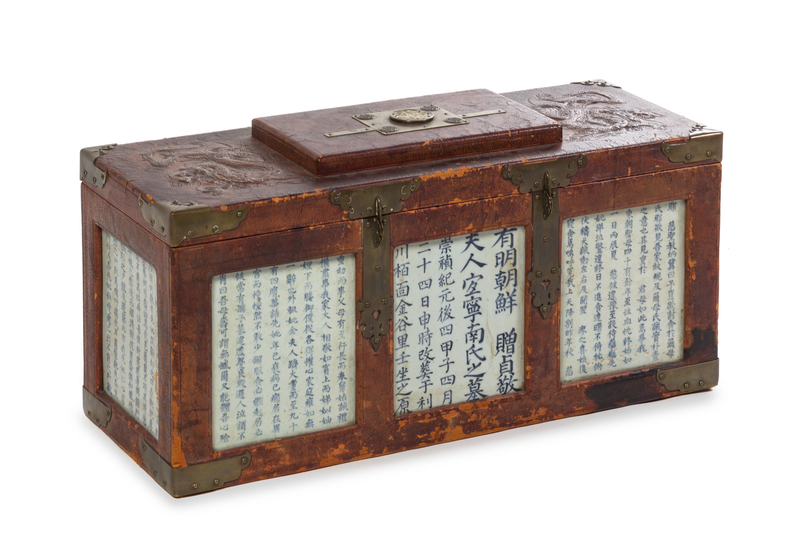 A Large Korean Leather and Porcelain-Inset Chest