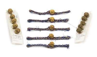 comprising three sets of five, one set containing cords and part of one sleeve.
