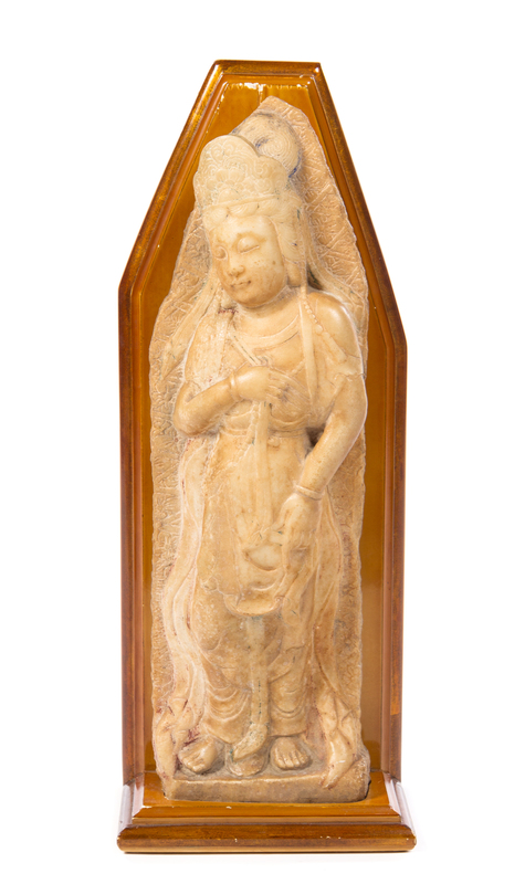 A Chinese Carved Marble Figure of a Standing Guanyin
