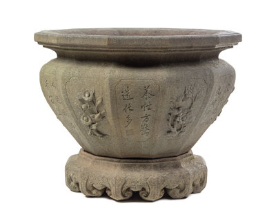 A Large Chinese Carved Stone Jardiniere