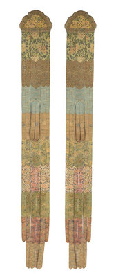 each having a lingzhi crown supporting six-strands of tiered brocade, worked to show lotus and chrysanthemum scrolls, wan and other geometric patterns.