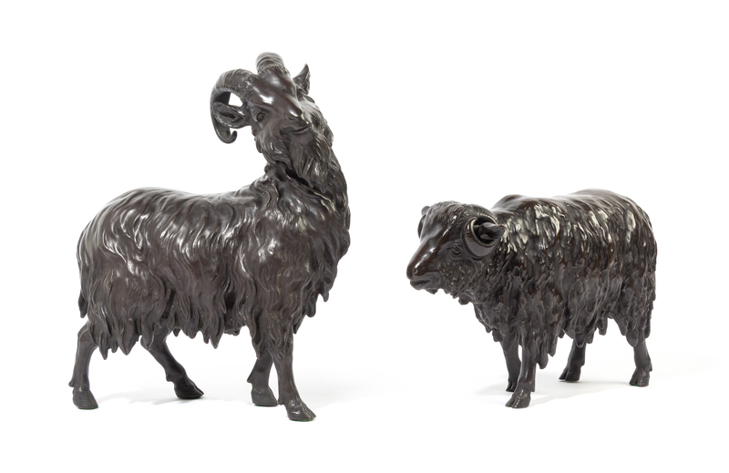 A Pair of Japanese Bronze Rams