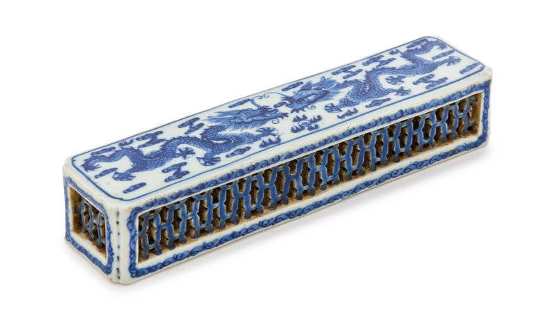 A Chinese Blue and White Porcelain Reticulated Wrist Rest