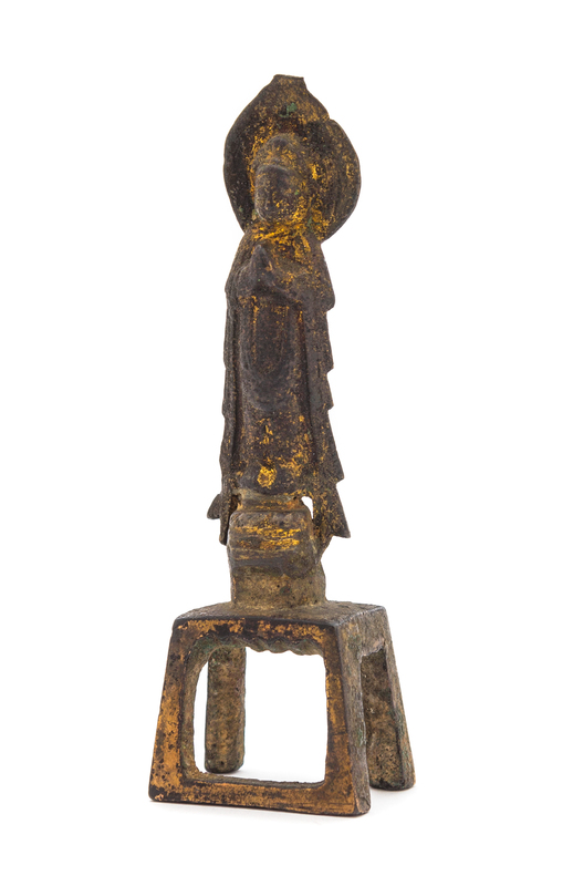 A Small Chinese Parcel Gilt Bronze Figure of Buddha