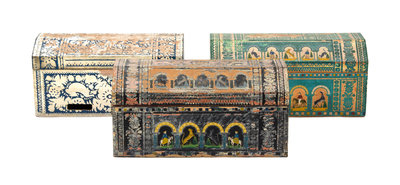 two painted with figures on horseback, the other with overallfoliate decoration, all with cut paper-motifs.