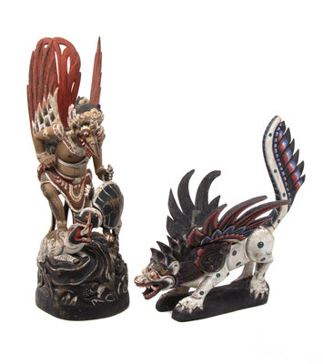 Two Balinese Painted Carved Wood Mythical Figures