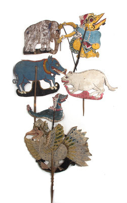 A Collection of Six Indonesian Wayang Kulit Shadow Puppets